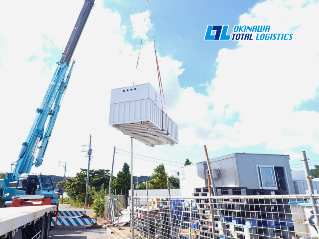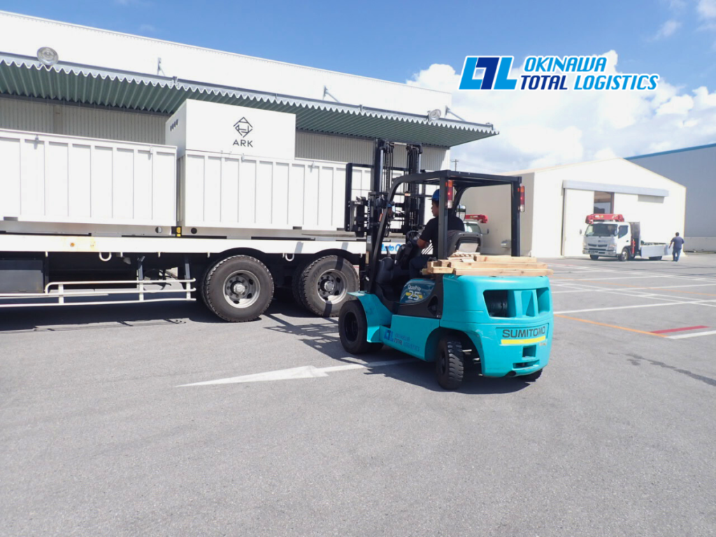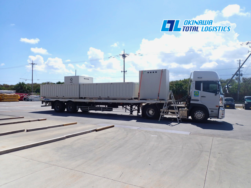 沖縄県うるま市の弊社倉庫から中城村まで養殖用タンクの輸送を行いました。