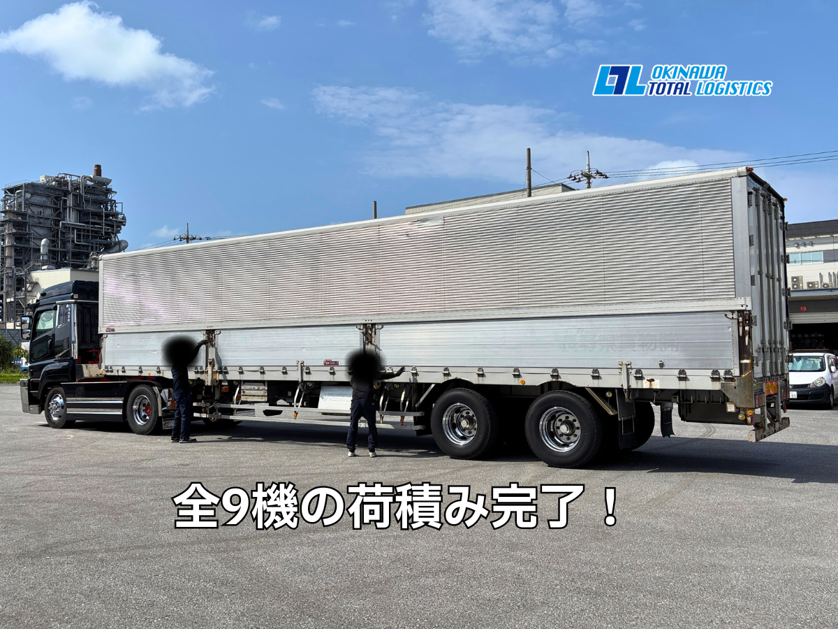 全9機、無事荷積み完了し、那覇新港から滋賀県へ向かいました。ご依頼いただき、ありがとうございました。
